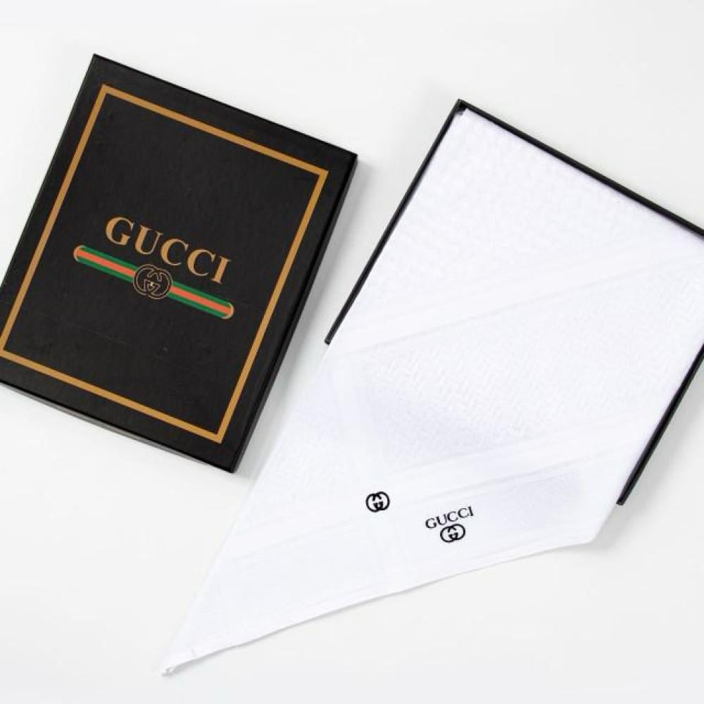 • شماغ قماش فاخر بتصميم أبيض جذاب ولمسة أنيقة مستوحاة من هوية قوتشي.